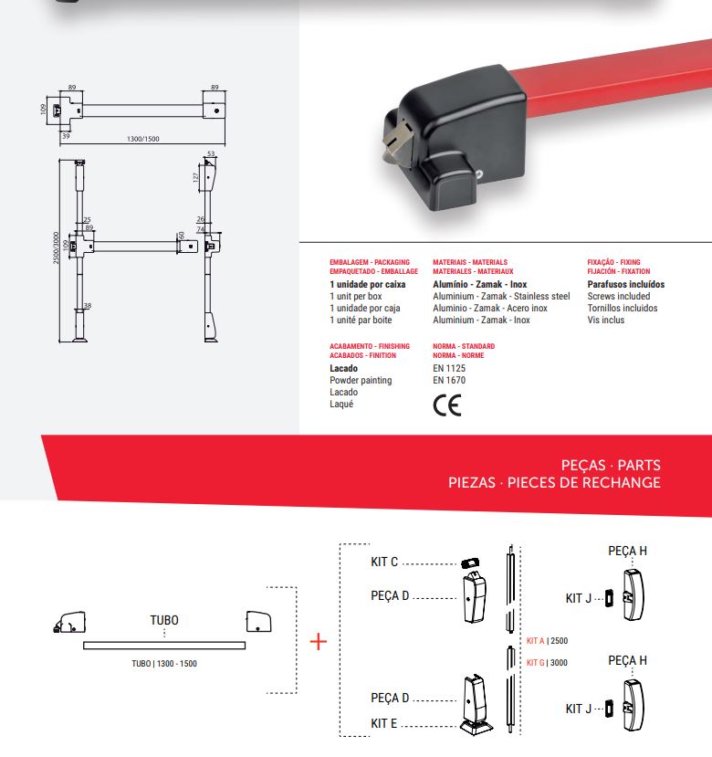 Dispositivo de fecho anti-pânico para saídas de emergência accionados por uma barrahorizontal, para utilização em caminhos de evacuação.