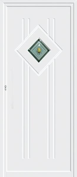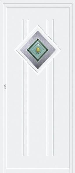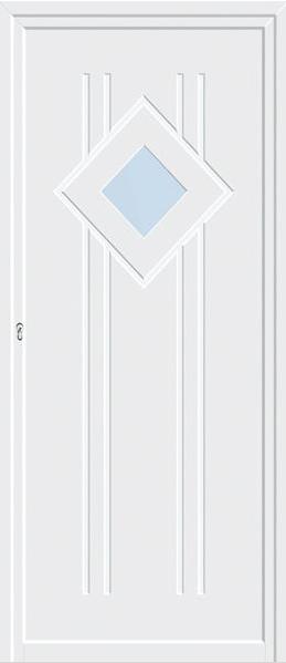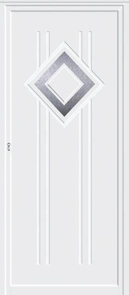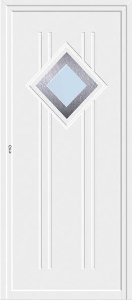 Painel de porta composto por 2 chapas de alumínio termolacado e poliuretano injetado, formando uma estrutura estratificada (sanduíche) com espessura standard de 24mm.