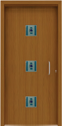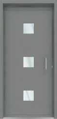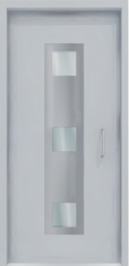 Painel de porta composto por 2 chapas de alumínio termolacado e poliuretano injetado, formando uma estrutura estratificada (sanduíche) com espessura standard de 24mm.