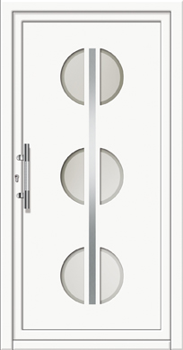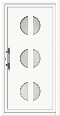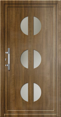 ​​​​​​Painel de porta composto por 2 chapas de alumínio de 2,5mm de espessura com poliuretano injetado entre ambas, à densidade de 120kg/m3, com ou sem vidro.