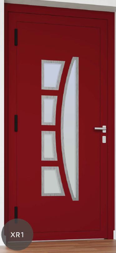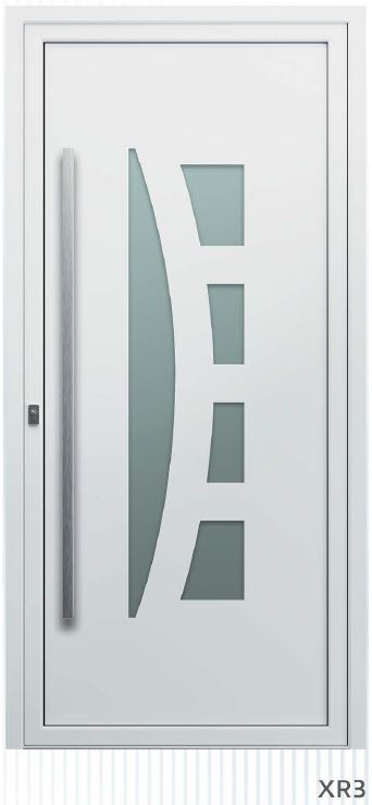 ​​​​​​Painel de porta composto por 2 chapas de alumínio de 2,5mm de espessura com poliuretano injetado entre ambas, à densidade de 120kg/m3, com ou sem vidro.