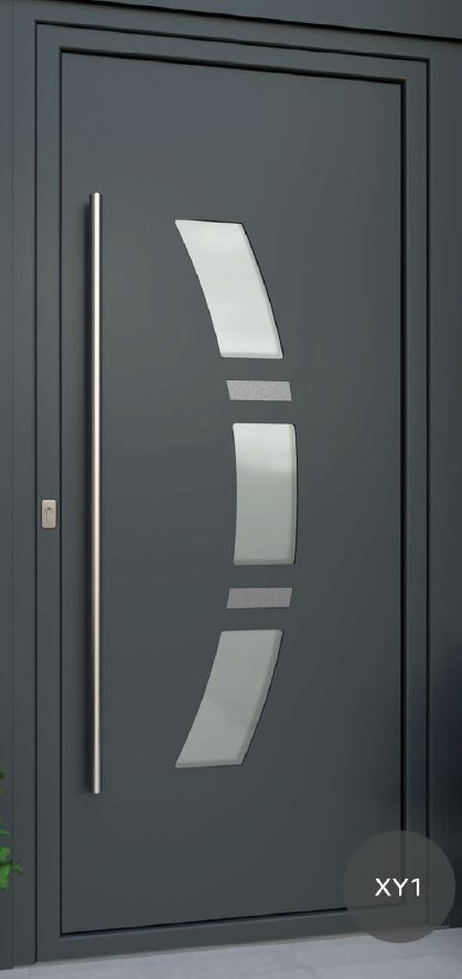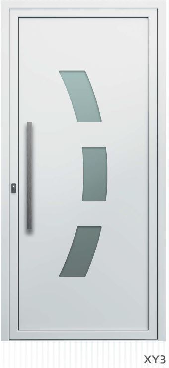 ​​​​​​Painel de porta composto por 2 chapas de alumínio de 2,5mm de espessura com poliuretano injetado entre ambas, à densidade de 120kg/m3, com ou sem vidro.