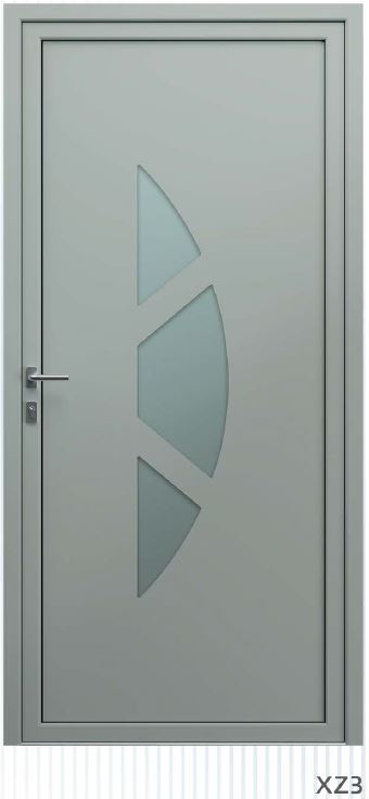 ​​​​​​Painel de porta composto por 2 chapas de alumínio de 2,5mm de espessura com poliuretano injetado entre ambas, à densidade de 120kg/m3, com ou sem vidro.