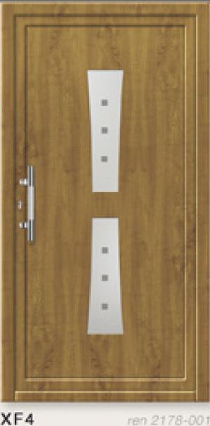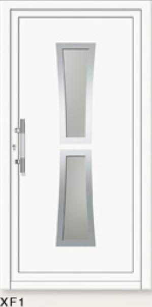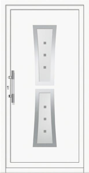 ​​​​​​Painel de porta composto por 2 chapas de alumínio de 2,5mm de espessura com poliuretano injetado entre ambas, à densidade de 120kg/m3, com ou sem vidro.