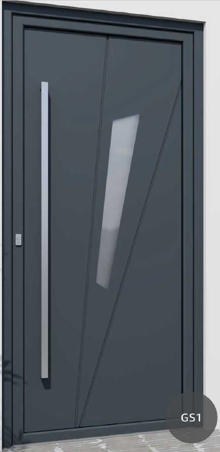 ​​​​​​Painel de porta composto por 2 chapas de alumínio de 2,5mm de espessura com poliuretano injetado entre ambas, à densidade de 120kg/m3, com ou sem vidro.