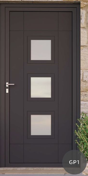 ​​​​​​Painel de porta composto por 2 chapas de alumínio de 2,5mm de espessura com poliuretano injetado entre ambas, à densidade de 120kg/m3, com ou sem vidro.
