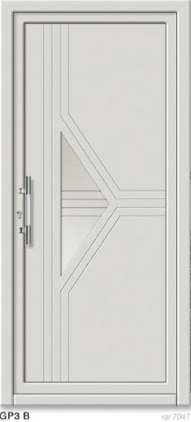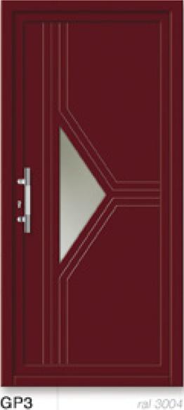 ​​​​​​Painel de porta composto por 2 chapas de alumínio de 2,5mm de espessura com poliuretano injetado entre ambas, à densidade de 120kg/m3, com ou sem vidro.