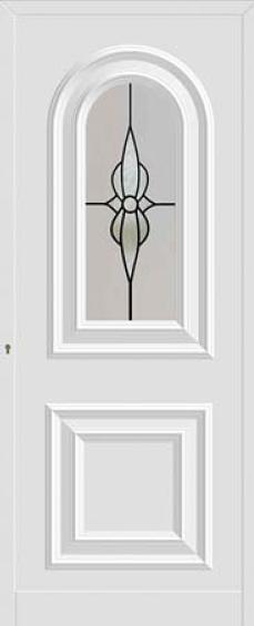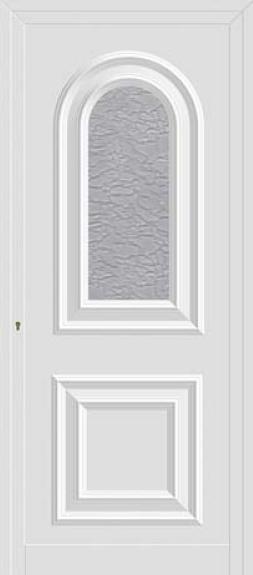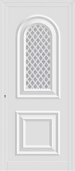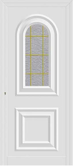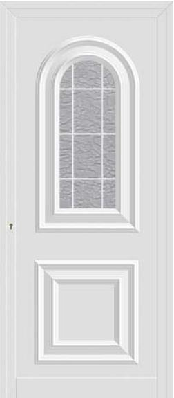Painel de porta composto por 2 chapas de alumínio de 1,5/1,8mm de espessura, termolacado e poliuretano injetado, formando uma estrutura estratificada (sanduíche) com espessura standard de 20/24mm.