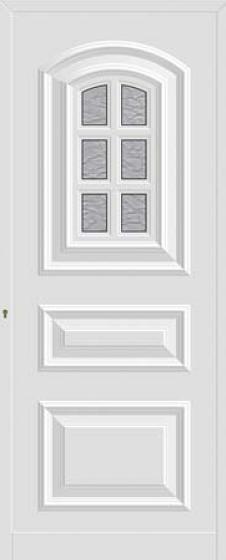 Painel de porta composto por 2 chapas de alumínio de 1,5/1,8mm de espessura, termolacado e poliuretano injetado, formando uma estrutura estratificada (sanduíche) com espessura standard de 20/24mm.
