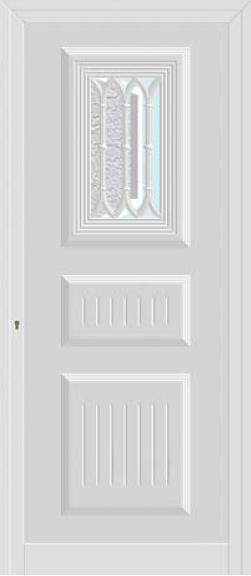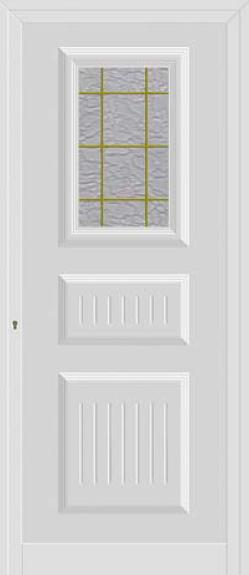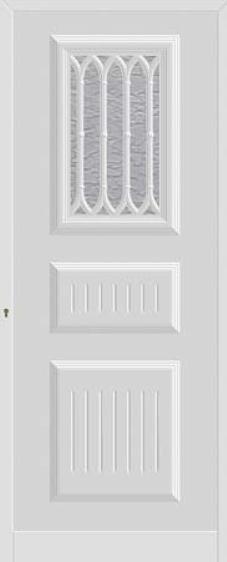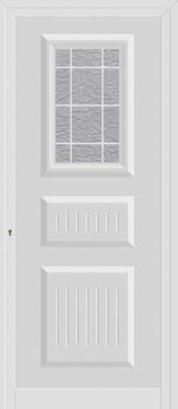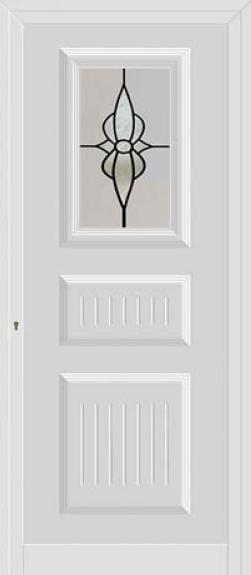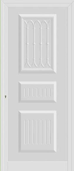 Painel de porta composto por 2 chapas de alumínio de 1,5/1,8mm de espessura, termolacado e poliuretano injetado, formando uma estrutura estratificada (sanduíche) com espessura standard de 20/24mm.