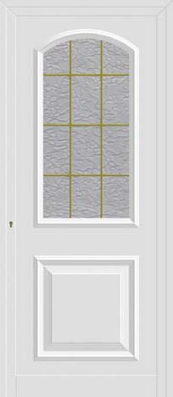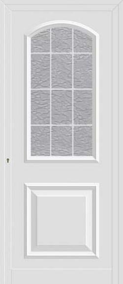 Painel de porta composto por 2 chapas de alumínio de 1,5/1,8mm de espessura, termolacado e poliuretano injetado, formando uma estrutura estratificada (sanduíche) com espessura standard de 20/24mm.