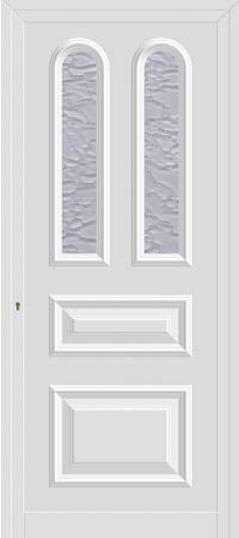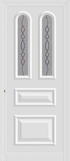 Painel de porta composto por 2 chapas de alumínio de 1,5/1,8mm de espessura, termolacado e poliuretano injetado, formando uma estrutura estratificada (sanduíche) com espessura standard de 20/24mm.