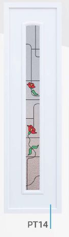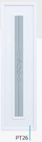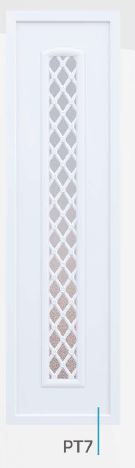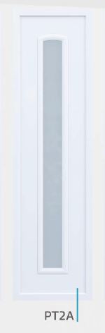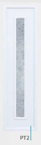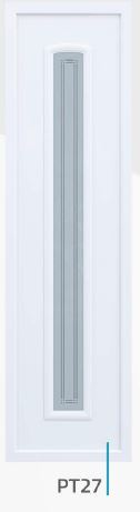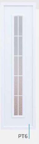 Painel de porta composto por 2 chapas de alumínio de 1,8mm de espessura com poliuretano injetado entre ambas, à densidade de 120kg/m3, com ou sem vidro.