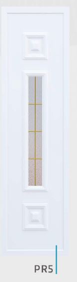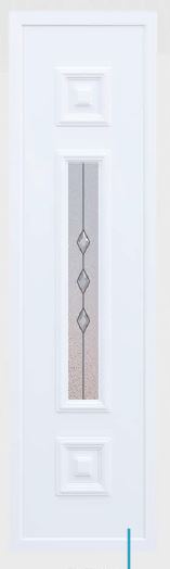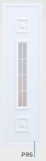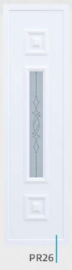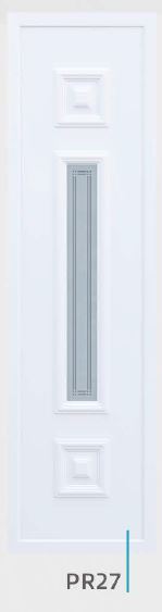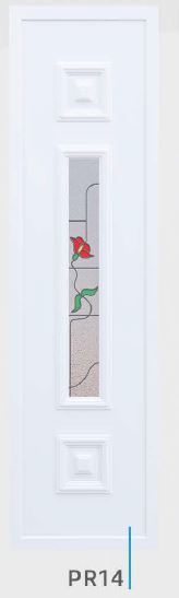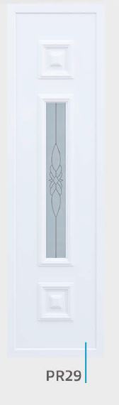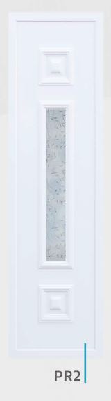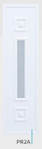 Painel de porta composto por 2 chapas de alumínio de 1,8mm de espessura com poliuretano injetado entre ambas, à densidade de 120kg/m3, com ou sem vidro.