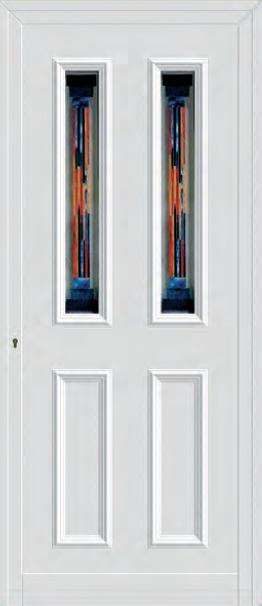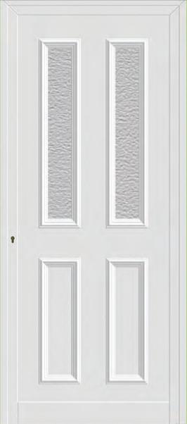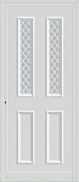 Painel de porta composto por 2 chapas de alumínio termolacado e poliuretano injetado, formando uma estrutura estratificada (sanduíche) com espessura standard de 20mm.
