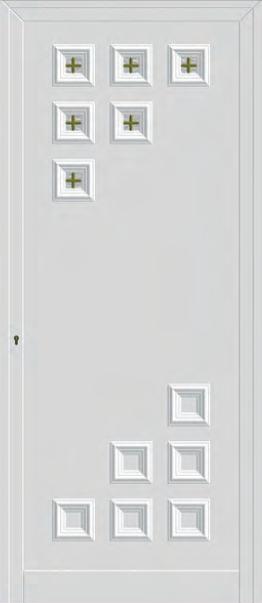 Painel de porta composto por 2 chapas de alumínio termolacado e poliuretano injetado, formando uma estrutura estratificada (sanduíche) com espessura standard de 20mm.