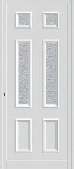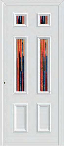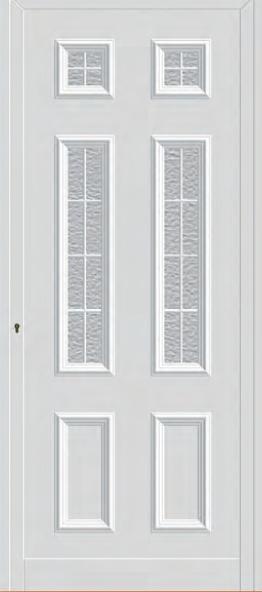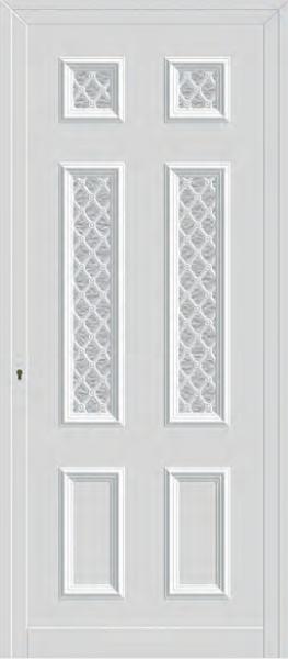 Painel de porta composto por 2 chapas de alumínio termolacado e poliuretano injetado, formando uma estrutura estratificada (sanduíche) com espessura standard de 20mm.