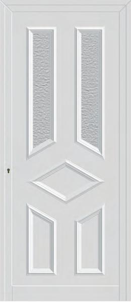 Painel de porta composto por 2 chapas de alumínio termolacado e poliuretano injetado, formando uma estrutura estratificada (sanduíche) com espessura standard de 20mm.