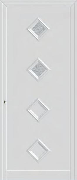 Painel de porta composto por 2 chapas de alumínio termolacado e poliuretano injetado, formando uma estrutura estratificada (sanduíche) com espessura standard de 20mm. O Poliuretano (densidade de 90kg/m3) é injetado, permitindo chegar a todos os pontos do painel, resuntando num produto final com maior reistência do que a obtida através de qualquer outro processo.