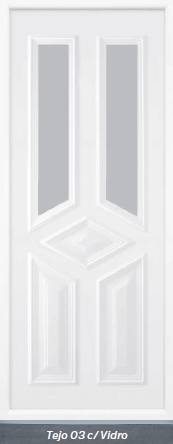 Painel de porta composto por 2 chapas de alumínio de 1,8mm de espessura, com enchimento por injecção de poliuretano de alta densidade.