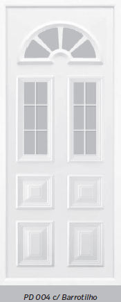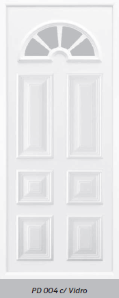 Painel de porta composto por 2 chapas de alumínio de 1,8mm de espessura, com enchimento por injecção de poliuretano de alta densidade.