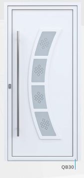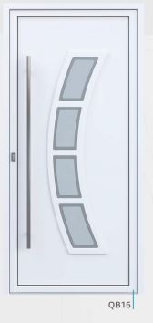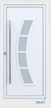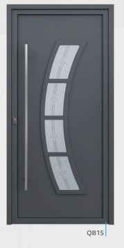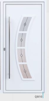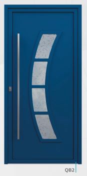 Painel de porta composto por 2 chapas de alumínio de 1,8mm de espessura com poliuretano injetado entre ambas, à densidade de 90kg/m3, com ou sem vidro.