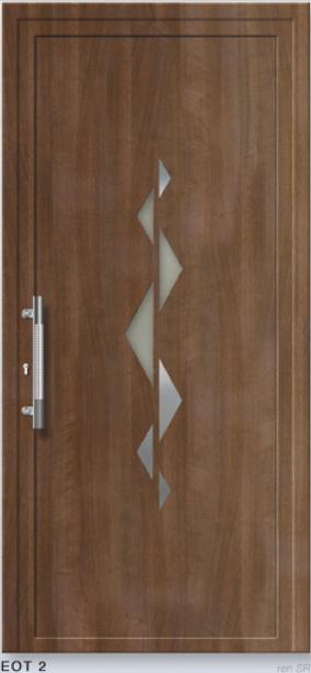 ​​​​​​Painel de porta composto por 2 chapas de alumínio de 2,5mm de espessura com poliuretano injetado entre ambas, à densidade de 120kg/m3, com ou sem vidro.