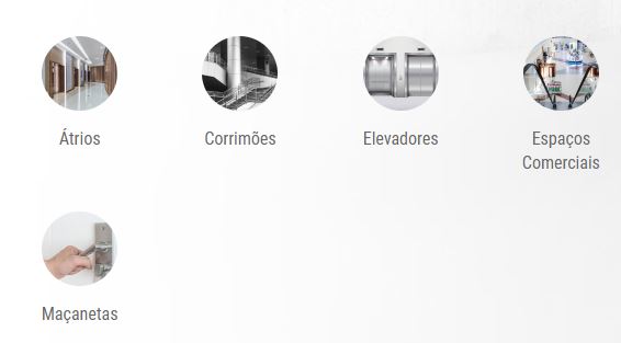 Superfícies: vidros, corrimões, maçanetas, balcões, etc.