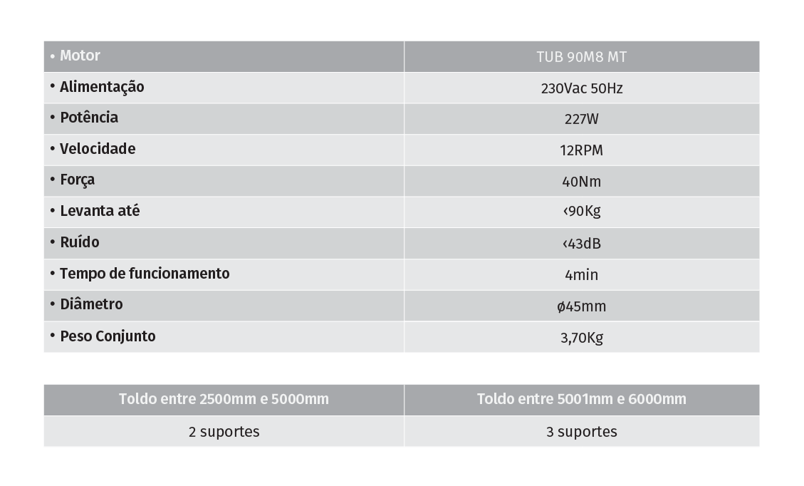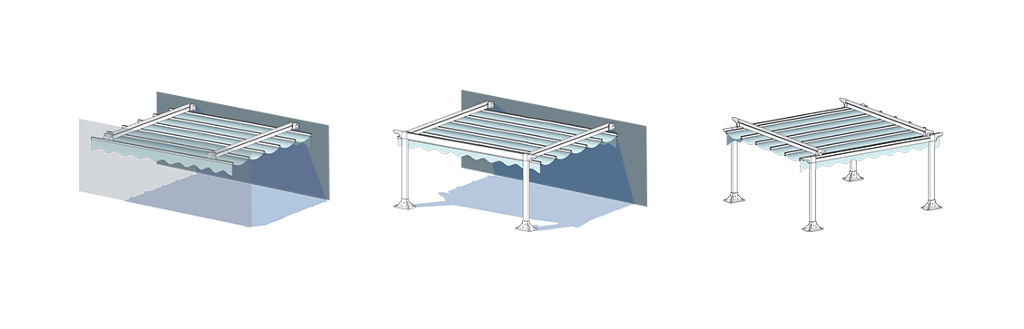 Possibilidade de construção com tecidos e medidas personalizadas (largura e projeção) de acordo com tabelas apresentadas no catálogo para responder a qualquer situação e ambiente.